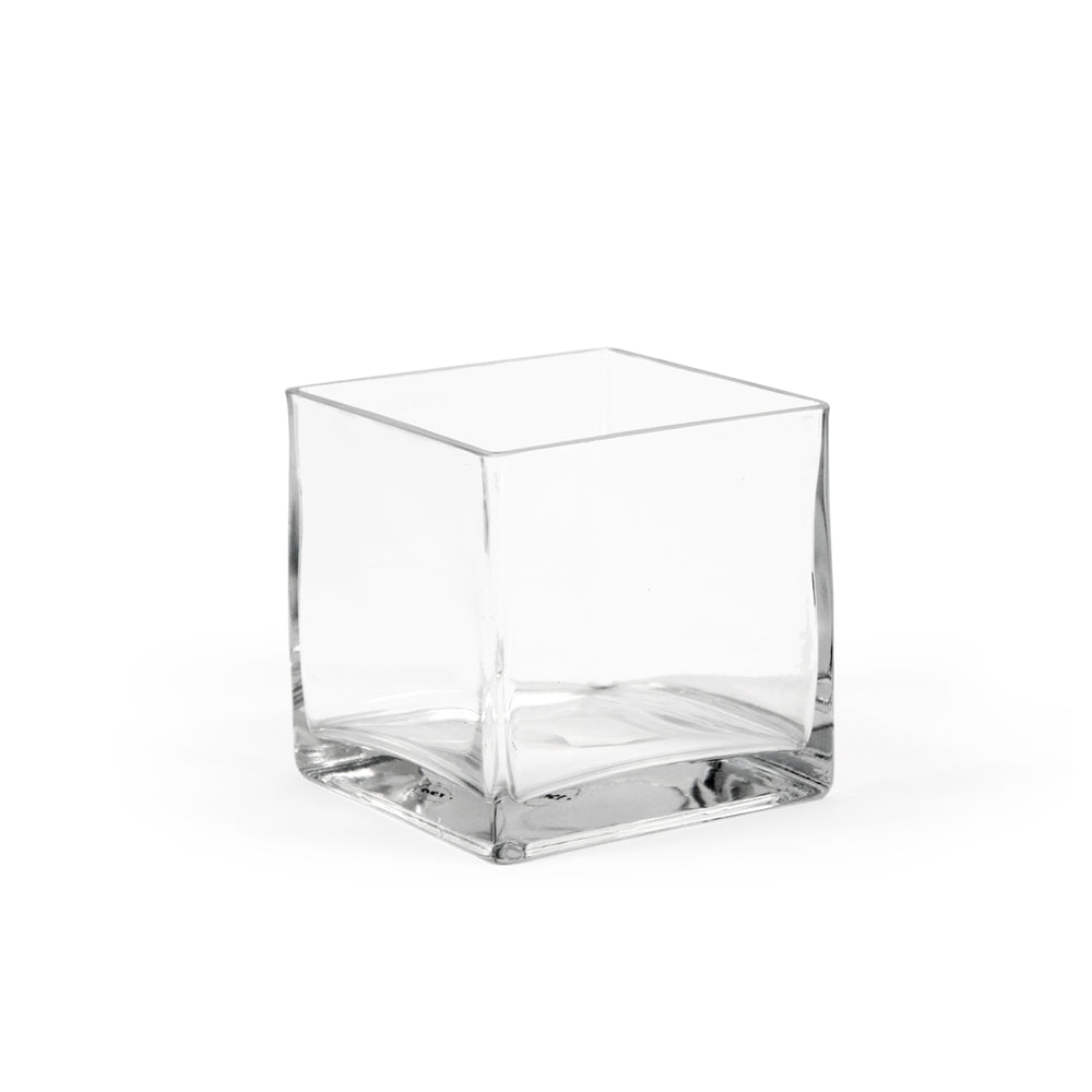 Glass square cube containers designed to hold decorative floral arrangements or luxury accent pieces. Features a smooth, transparent glass body made with high-quality material and comes in various sizes to suit any décor space. Elevate tabletop surfaces in living rooms, dining spaces, or event settings with this minimalist, yet eloquent centerpiece.