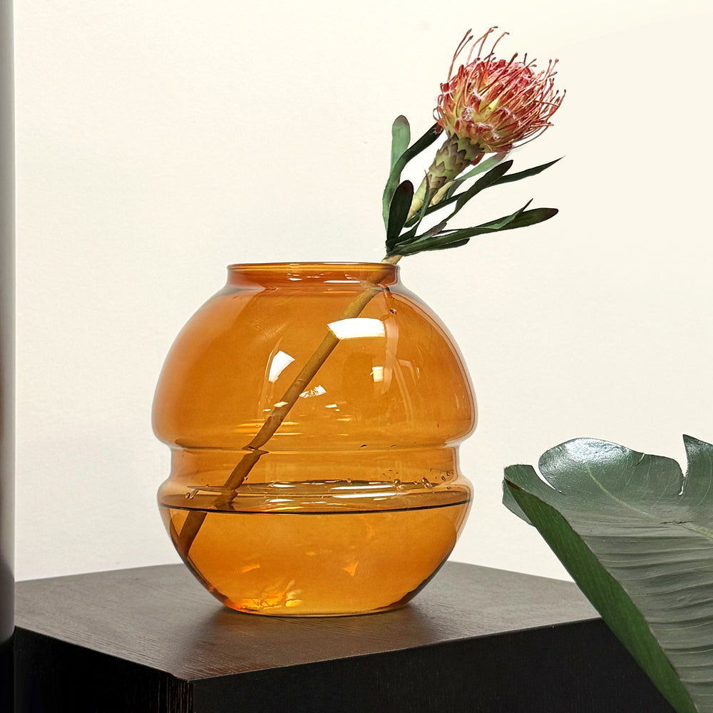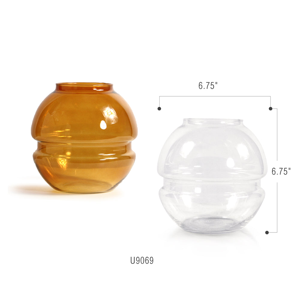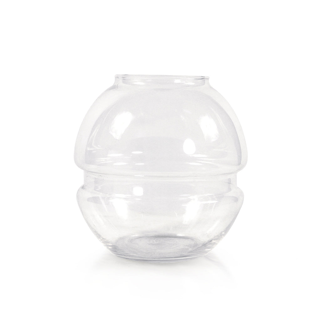 This rounded glass vase pairs a smooth, spherical body with a refined, narrow opening to showcase a single stem or small arrangement. Hand-blown for optical clarity and subtle variations, the narrow-neck design supports blooms and dried sprigs while the orb silhouette reflects light beautifully. Ideal for modern, Scandinavian, and minimalist interiors.