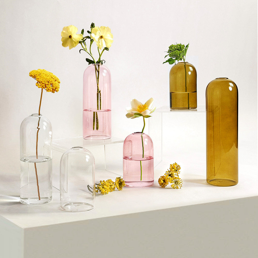 Elevate your floral arrangements with the timeless simplicity of our glass cylindrical vase. Designed with a slender profile and narrow opening, this piece enhances the natural beauty of a single stem, a delicate branch, or minimalist floral compositions.