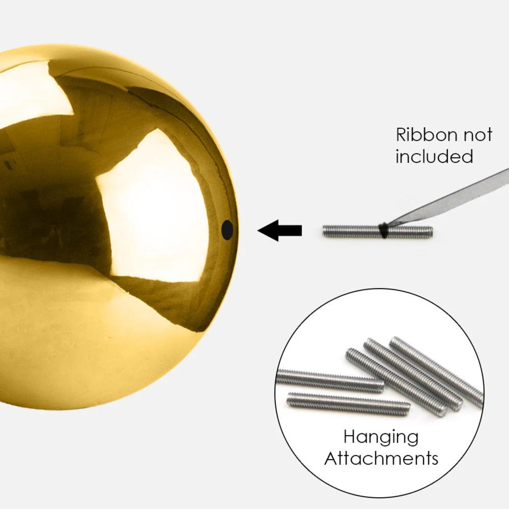 These solid sphere balls are excellent ornament accents that bring a festive and ceremonial touch to any décor setting. Made from stainless steel and polished with reflective coated finishes in gold, silver, black, and white. Display with other assortments in bowls, on trees, or hang within the ceiling. Create an abundance of decorative arrangement styles for a modern interior look, around the home office, studio gallery, wedding ballroom, event hall, etc.